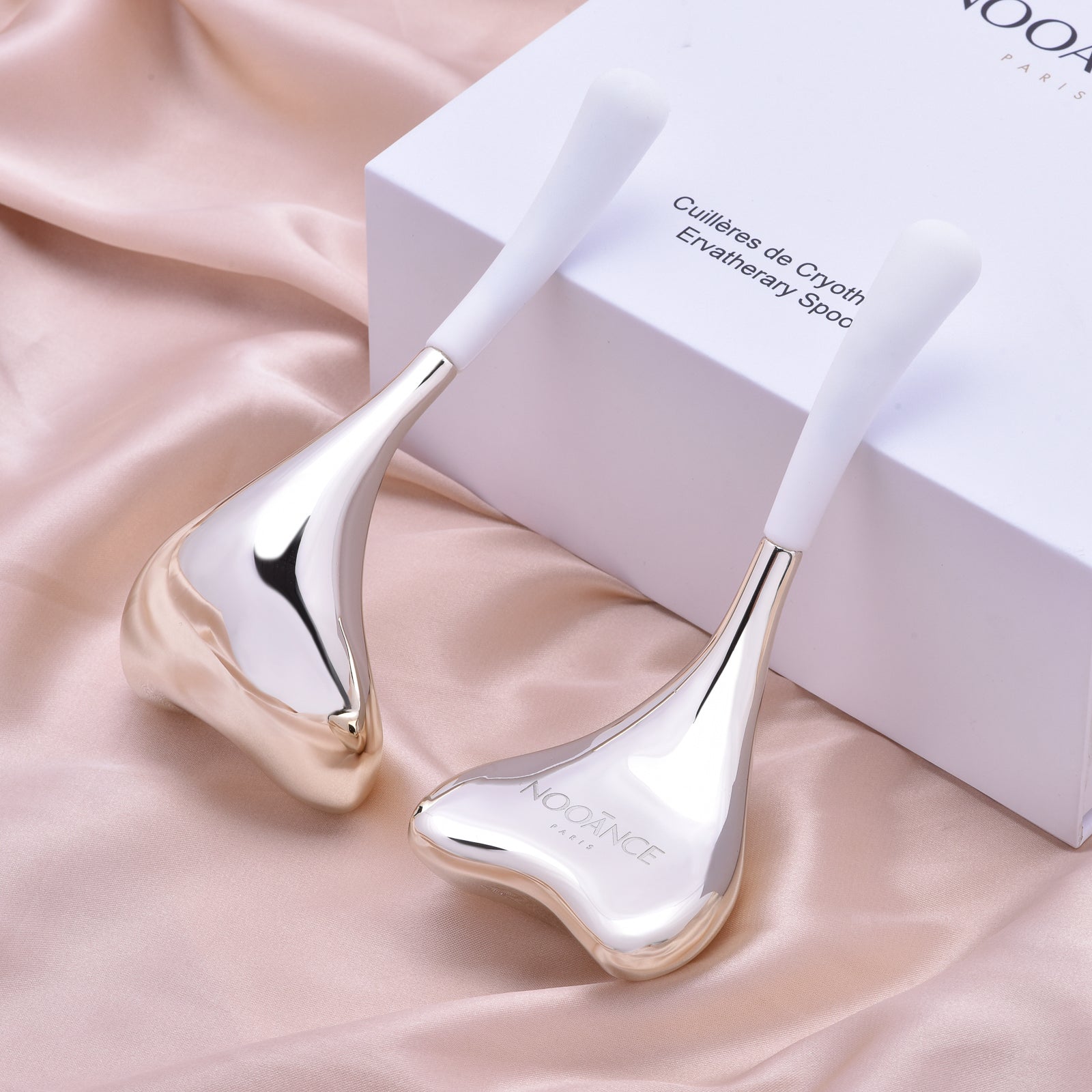 Once the serum has been absorbed, gently massage your face with the previously cooled Cryotherapy Spoons for a feeling of intense freshness and better penetration of the active ingredients.