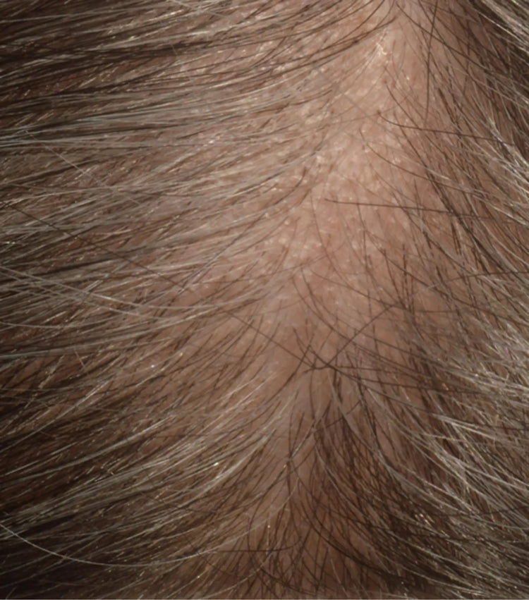 “Volume and reduction in hair loss + small growths on the forehead after a few weeks”