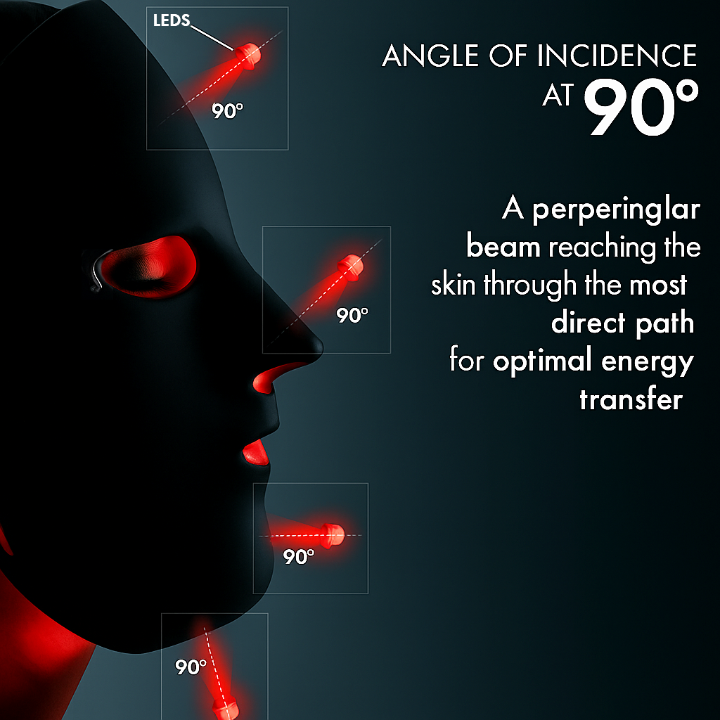 This precise angle—called the angle of incidence—allows light to penetrate directly into the epidermis, without deflection. The result: maximum absorption of energy where it is actually needed.