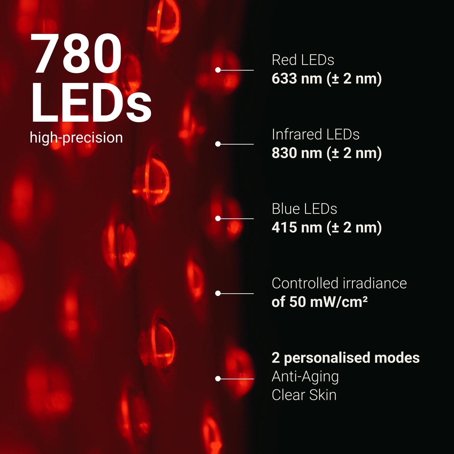 Nooānce technology Red light (633nm)* Infrared light (830nm)* Blue light (415nm)* — — LED accuracy +/- 2nm