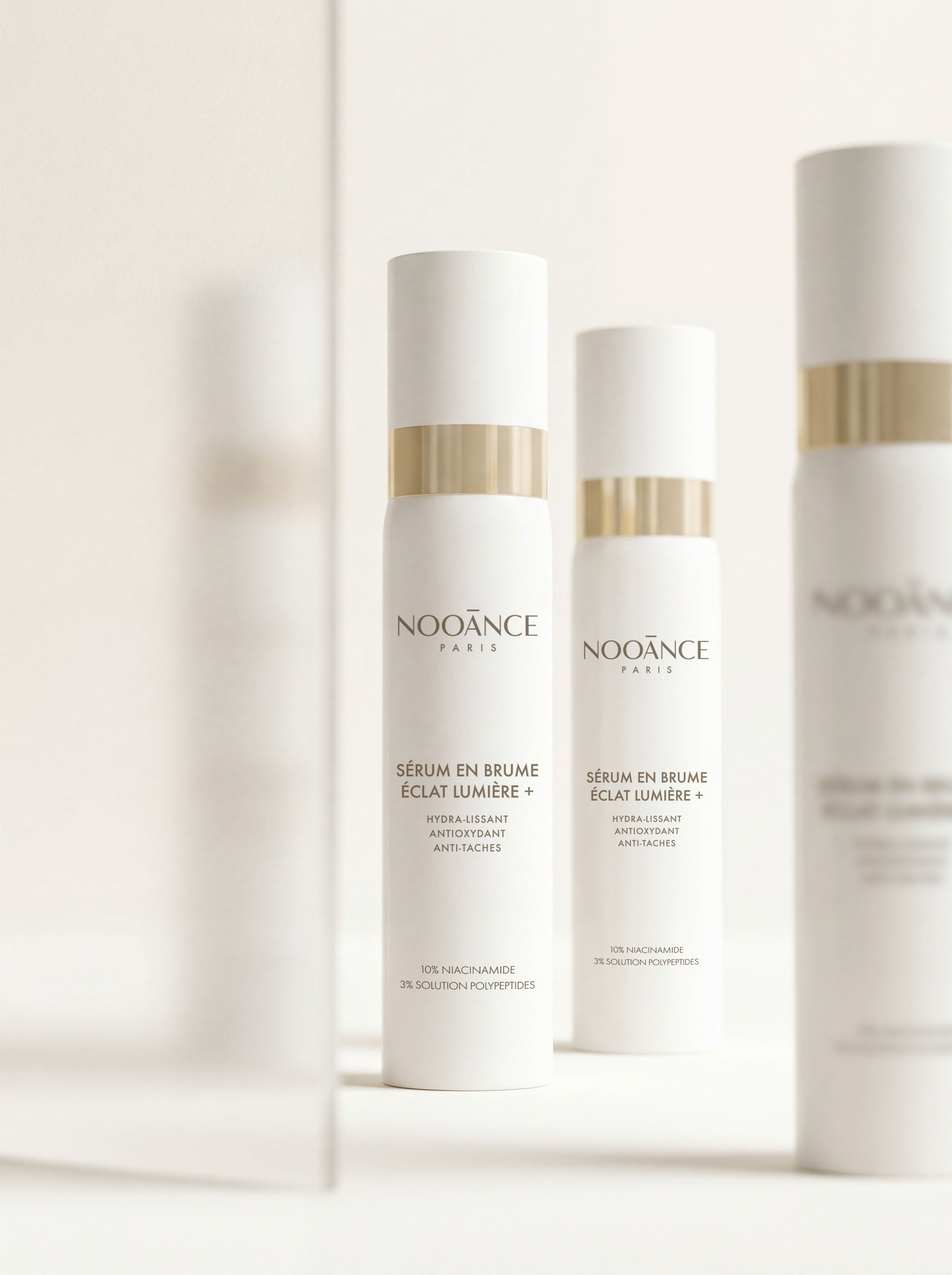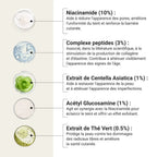 Enrichi en Palmitoyl Tripeptide-1 et Palmitoyl Tetrapeptide-7, peptides biomimétiques associés dans la littérature scientifique au soutien de la structure cutanée, le Sérum en Brume contribue à atténuer l'apparence des signes visibles de l'âge avec une utilisation régulière.