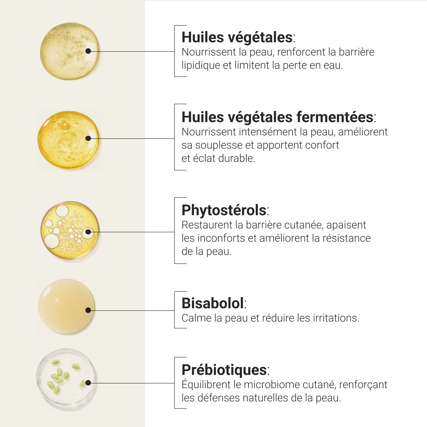 - Peau nourrie, douce, ferme et avec un microbiome équilibré.