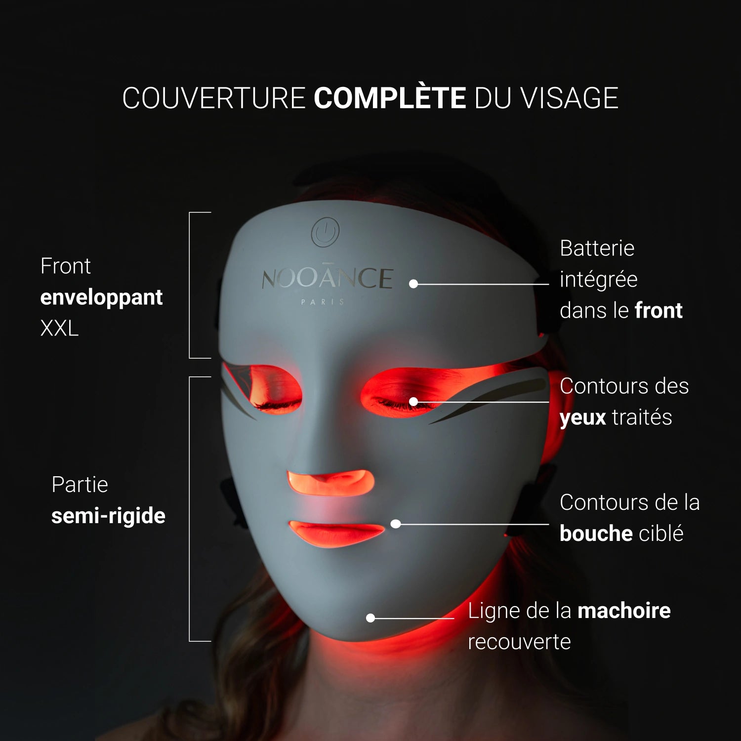 La technologie Nooānce Synergie des lumières rouges (633nm) et infrarouges (830 nm) * Précision des LEDs +/- 2nm